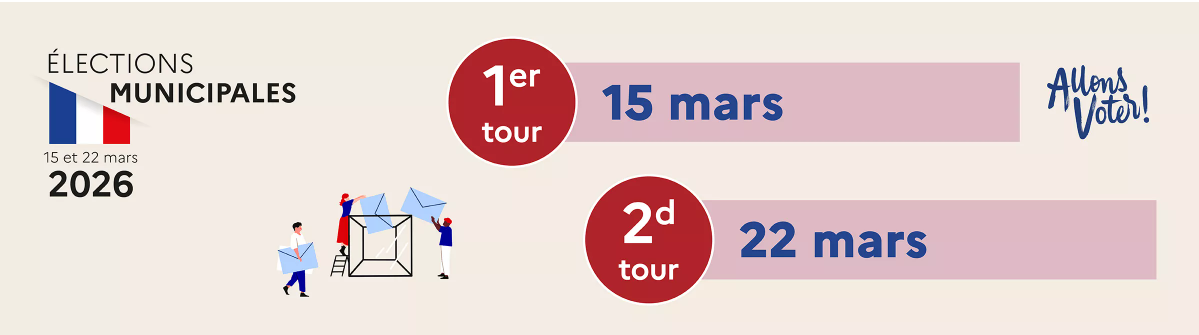 Les élections municipales et communautaires auront lieu les 15 et 22 mars 2026. Si ce n’est déjà fait, pensez à vous inscrire sur les listes électorales avant la date butoir.